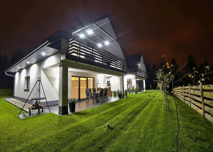 Domki Pod Lasem Mm Villa med 1 sovrum, som ligger ungefär 10 minuter med bil från Chabowka railway museum, erbjuder soldäck, solterrass och picknickområde för gästerna. Villan med 1 badrum har en privat parkering och en terrass med utsikt över trädgården.